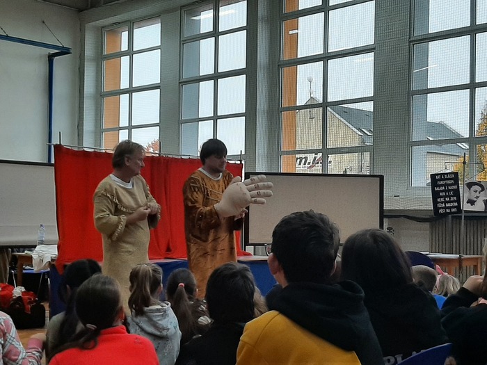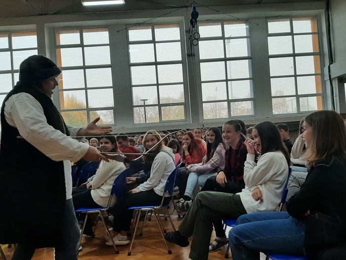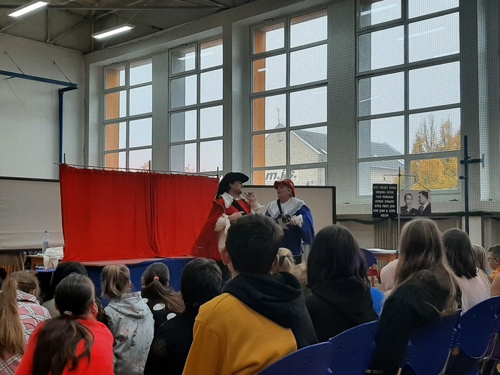 V pondělí 24. 10. se uskutečnilo divadelní představení pro žáky 2. stupně Legenda V + W. V podání herců Divadélka Hradec Králové se žáci vtipnou formou dozvěděli o tvorbě a osobnostech Osvobozeného divadla. To vše bylo protkáno divadelními ukázkami nejvýznamnějších her Voskovce a Wericha.